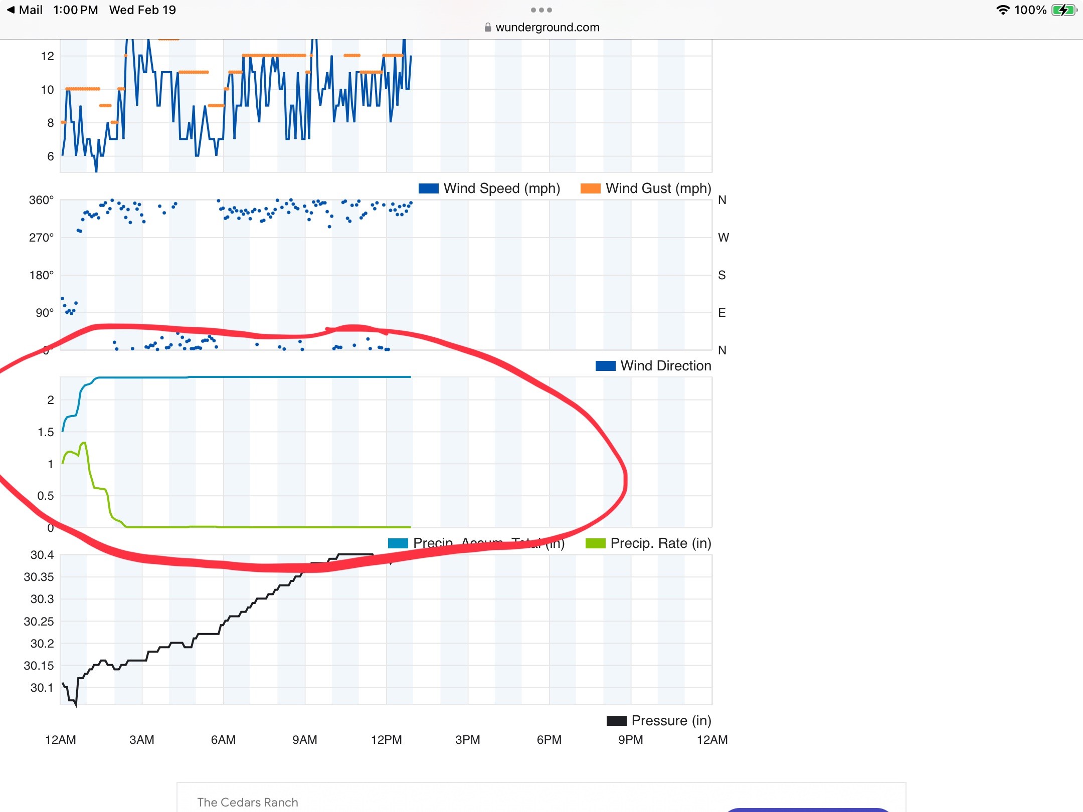 Note the area north of I10 and North of Scott received a heaver rainfall than surrounding areas. We then looked for confirmation using the WeatherUnderground web weather system which allows the public to connect their private weather stations to their database.