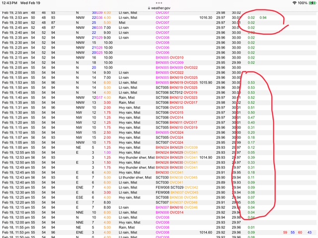 Investigating the rainfall at the Lafayette Airport gage we found the below – only 0.94″ of rain.